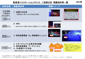 ・ご協賛の申込は随時お受けいたします。看板による広告への追加はお申込みから10日程度の作業日数をいただきます。